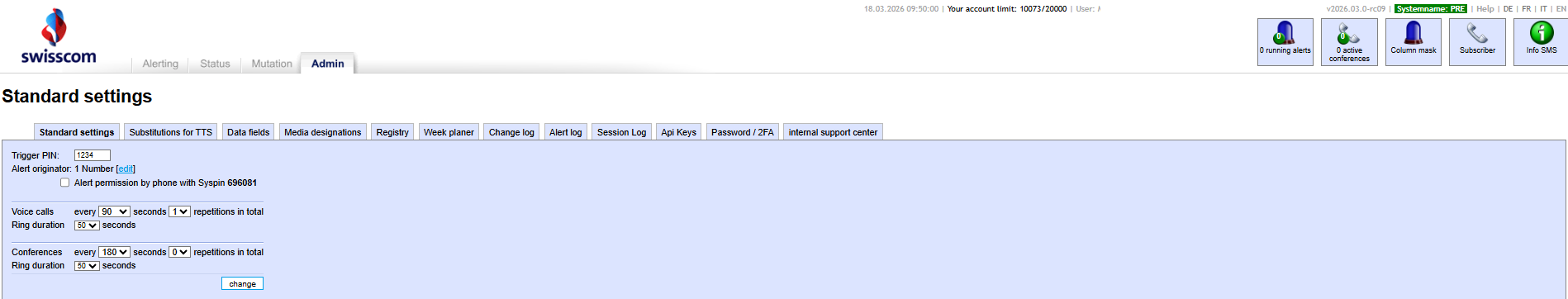 The Admin area lets you configure important settings for your eAlarm account such as defining alert media, etc. There you will also find optional modules that let you create rotation plans, etc.